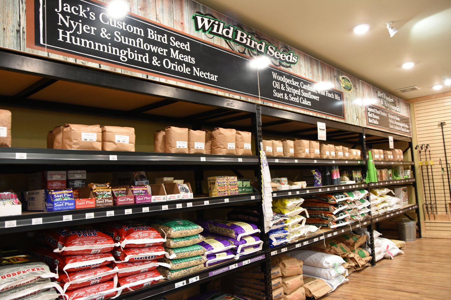 Whether you are a seasoned pro at feeding the birds or just starting out, we have everything you need to create or revitalize your bird feeding area. With you in mind, we hand pick every bird feeder and seed that is put on our store floor! Dozens of beautiful feeders, made in the U.S.A. and handcrafted with superior quality line our walls. With over fifteen varieties of seed to choose from , we have what you need when it comes to bird feeding. Visit today and ask about our frequent buyer program for our "Jack's Blend" custom bird seed.